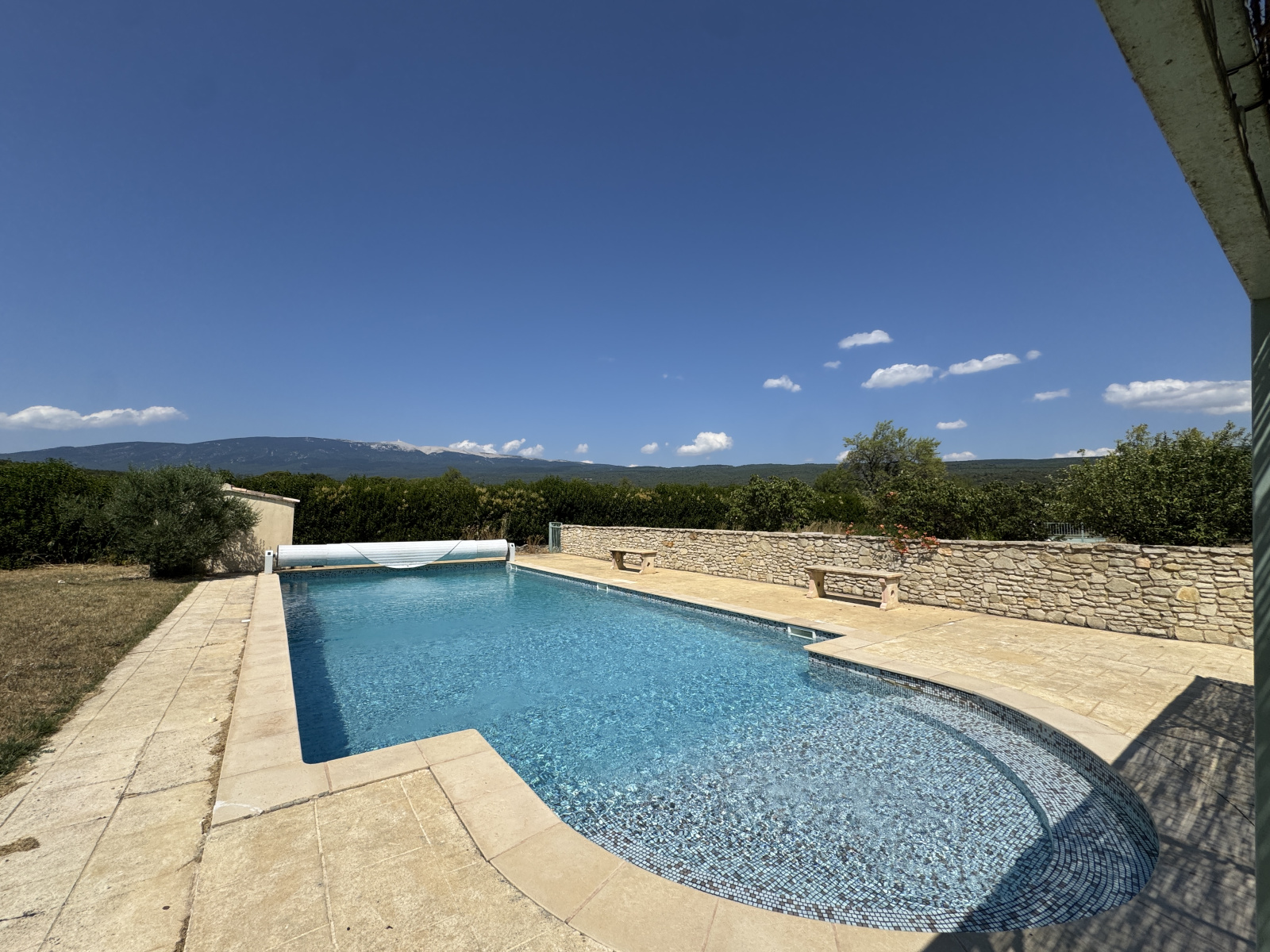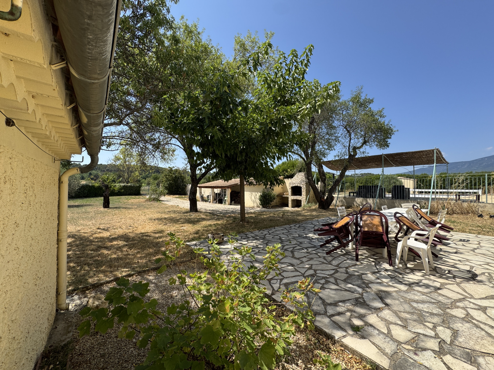 À l’extérieur, vous découvrirez une belle piscine aux dimensions généreuses, équipée d’un volet roulant électrique, alliant sécurité et facilité d’entretien. Le jardin accueille également plusieurs arbres fruitiers, participant au charme bucolique de l’ensemble.