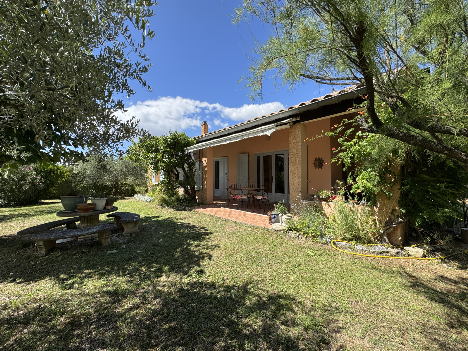 L’ensemble est implanté sur une magnifique parcelle arborée et entièrement clôturée d’environ 2 000 m², avec une piscine offrant une vue imprenable sur le Mont Ventoux.
