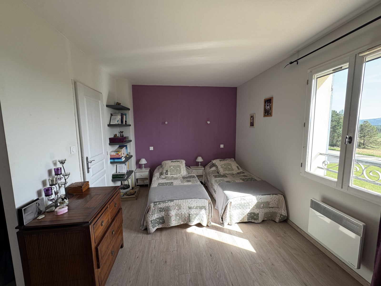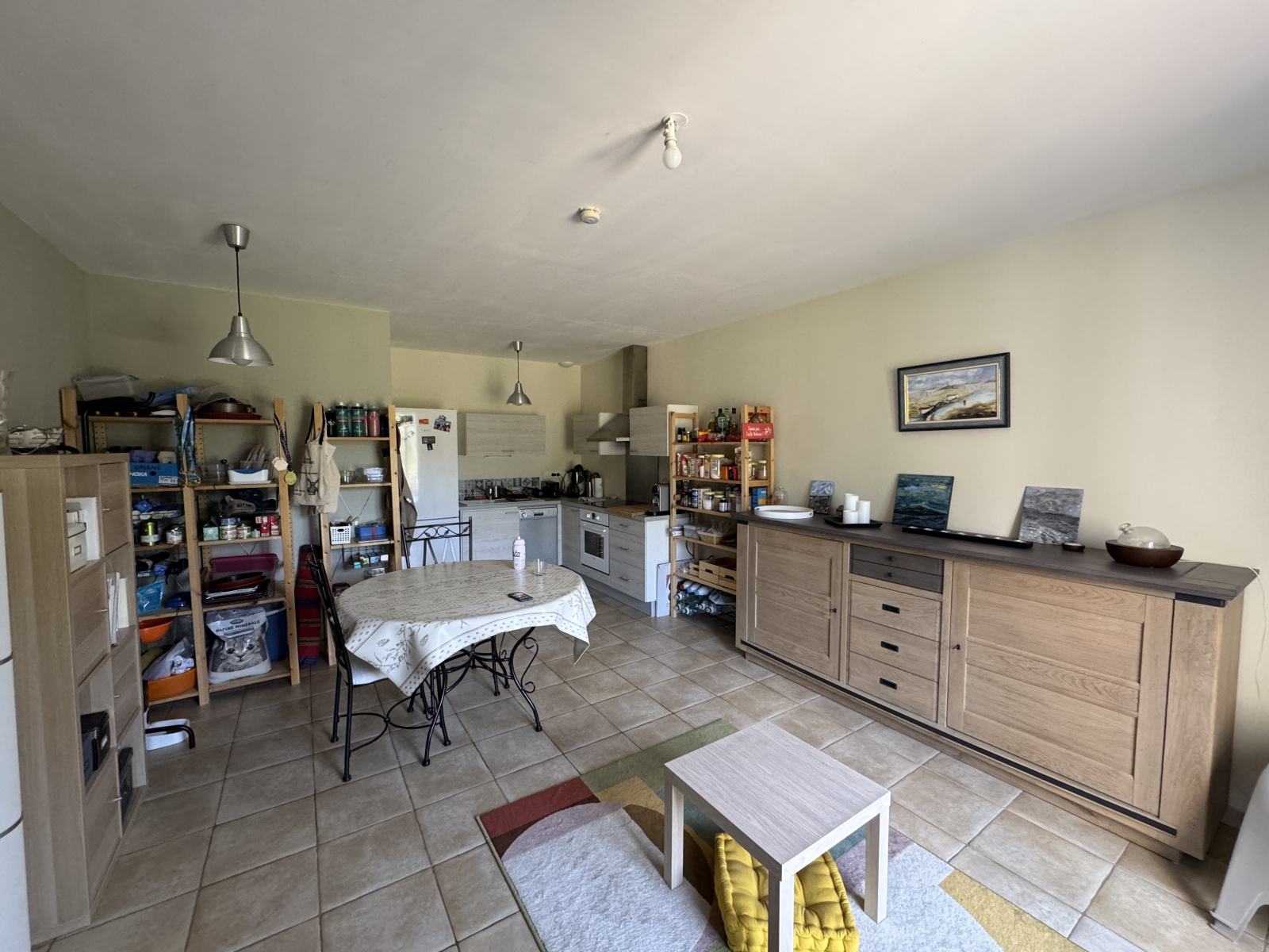 La maison dispose de cinq chambres et de quatre salles d’eau, réparties entre les deux logements. On y trouve également un séjour lumineux, une cuisine équipée et plusieurs espaces de vie confortables et modulables selon vos besoins. Le terrain de 1 700 m² est arboré, et offre une belle vue dégagée sur les paysages naturels du pays de Sault.
